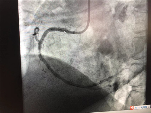時間就是心肌,時間就是生命。導管室內(nèi),心血管內(nèi)科副主任徐先進、主任助理農(nóng)彥林已然待命,病人一到,團隊立即為其行深靜脈穿刺泵入血管活性藥物等,情況緩解后,行多體位冠狀動脈造影,確認RCA(右冠狀動脈)近端完全閉塞。經(jīng)家屬同意,在汪念東院長的指導下,徐先進、農(nóng)彥林、張星為患者行經(jīng)皮冠狀動脈球囊擴張成形術(shù)+經(jīng)外周靜脈穿刺中心靜脈置管術(shù)。術(shù)中,張奶奶再次出現(xiàn)室顫,心血管內(nèi)科團隊臨危不亂,立即予以300焦電除顫搶救,患者竇性心律恢復。隨后,球囊擴張為其置入心臟支架,復查造影顯示血管恢復暢通,無明顯夾層,殘余狹窄不到10%。術(shù)后,張奶奶血壓偏低,轉(zhuǎn)入ICU無創(chuàng)呼吸監(jiān)護,2天后轉(zhuǎn)回心血管內(nèi)科護理。