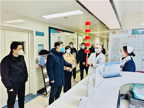 慰問中,金玉區(qū)長與一線醫(yī)務(wù)人員親切交流,并代表大觀區(qū)向全院醫(yī)務(wù)人員致以新春祝福和節(jié)日問候。