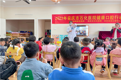 近日,石化醫(yī)院組織天使愛心服務(wù)隊和口腔科醫(yī)護專家前往貝樂永安公館幼兒園,開展衛(wèi)生健康宣教活動。