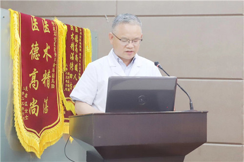 先進(jìn)基層黨組織臨床一黨支部書記、優(yōu)秀黨務(wù)工作者代表金莉匯報(bào)支部“凝聚醫(yī)心?患者舒心”黨建品牌創(chuàng)建情況,通過牢守初心、旗幟引領(lǐng)、守正創(chuàng)新,讓品牌立起來、亮起來、活起來,讓黨旗在臨床一線高高飄揚(yáng)。