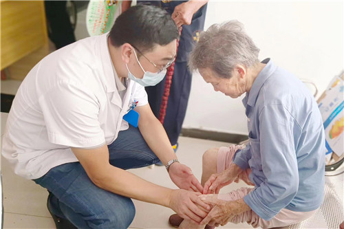 老人們?cè)缭绲鼐驮陴B(yǎng)老院門口等待專家的到來。“醫(yī)生,給我量個(gè)血壓吧!”“醫(yī)生,我想測(cè)個(gè)血糖!”“醫(yī)生,我最近腰腿疼得厲害?!睂<覀円灰荒托慕獯穑槍?duì)老年病、常見病、多發(fā)病問題為前來咨詢就診的老人提供專業(yè)診治,并圍繞“科學(xué)健身,助力老年健康”活動(dòng)主題互動(dòng)交流,進(jìn)行老年病綜合評(píng)估和健康宣教,發(fā)放宣傳手冊(cè),從飲食起居、生活習(xí)慣等方面提供合理化建議和指導(dǎo),引導(dǎo)老人樹立健康的生活觀念,保持良好的生活習(xí)慣。