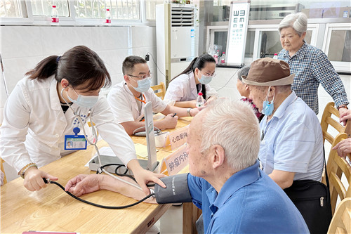 專家團隊由耳鼻咽喉頭頸外科、泌尿外科、神經(jīng)內(nèi)科、呼吸與危重癥醫(yī)學(xué)科、心血管內(nèi)科、腫瘤內(nèi)科、康復(fù)醫(yī)學(xué)科、眼科及護理專家等組成。義診現(xiàn)場,專家詳細詢問老人們的病史,給出專業(yè)的建議,盡心盡責(zé)答疑解惑,并免費為他們健康查體、測量血壓血糖,提供慢病咨詢、用藥及康復(fù)指導(dǎo)、防癌知識科普等醫(yī)療服務(wù),增強老年人的健康意識。