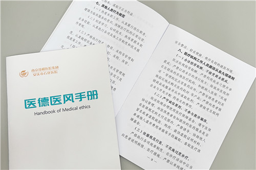制作《醫(yī)德醫(yī)風手冊》下發(fā)至各科室,組織全院干部職工學習上級主管部門頒布的規(guī)范規(guī)定、醫(yī)務人員服務儀表儀態(tài)規(guī)范、服務用語規(guī)范等,并按規(guī)范貫徹落實。