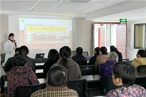 康復(fù)醫(yī)學(xué)科護(hù)士長(zhǎng)、高級(jí)健康管理師陳志梅以《合理膳食之疾病康復(fù)期食養(yǎng)建議》為題開展講座,用通俗易懂的語言、生動(dòng)形象的圖片,向社區(qū)群眾強(qiáng)調(diào)了食養(yǎng)的重要性,詳細(xì)介紹了平衡膳食的分類、骨折康復(fù)期的營(yíng)養(yǎng)補(bǔ)充以及營(yíng)養(yǎng)不良的自我監(jiān)測(cè)等,大家紛紛表示受益匪淺。