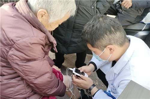 康復(fù)醫(yī)學(xué)科主治醫(yī)師徐棟、康復(fù)治療師盛子琪發(fā)揮專業(yè)特長(zhǎng),為居民義診義治,免費(fèi)提供中醫(yī)推拿、中頻脈沖電療等治療,耐心答疑解惑。康復(fù)醫(yī)學(xué)科主管護(hù)師卜衛(wèi)娜和護(hù)理雙主體教改班學(xué)生志愿者為居民免費(fèi)測(cè)量血壓、血糖,提醒大家養(yǎng)成健康的生活習(xí)慣。