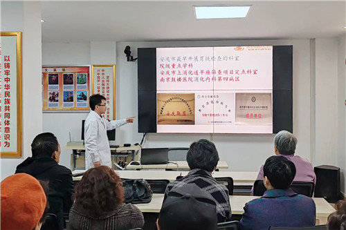 消化內(nèi)科副主任史院紅以《消化道早癌早診早治與預防宣教》為題,進行專題講座,運用通俗易懂的語言和生動直觀的圖片,讓居民們對消化系統(tǒng)疾病、胃腸鏡檢查的方法及重要性有了更深的了解,同時發(fā)揮專業(yè)特長,為社區(qū)居民義診義治,耐心答疑解惑。