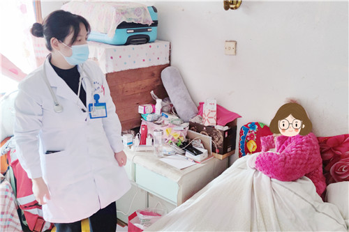 原來,張阿姨是石化醫(yī)院腫瘤內(nèi)科的老病號,因直腸癌肝轉移身體虛弱,長期臥床。電話隨訪中,腫瘤內(nèi)科胡麗娜副主任了解到張阿姨近期身體乏力、全腹疼痛并出現(xiàn)黃疸癥狀,前往醫(yī)院治療存在困難,遂決定組織醫(yī)護團隊主動上門服務。