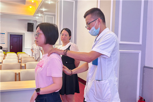 醫(yī)護(hù)專家為老師們量血壓、測血糖并耐心問診,針對健康問題給予專業(yè)治療建議和指導(dǎo)??祻?fù)理療專家逐一為老師進(jìn)行體態(tài)評估,對常見的頸椎、腰椎不適問題,提供免費(fèi)推拿治療,有效緩解了老師們的身體酸痛,贏得學(xué)校的一致好評。
