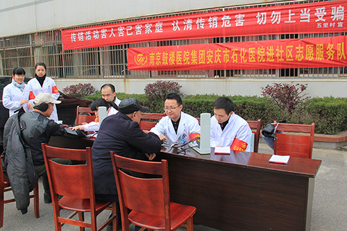 為大力宣傳普及健康知識(shí),倡導(dǎo)健康文明生活方式,服務(wù)群眾,體現(xiàn)愛(ài)心,根據(jù)市衛(wèi)計(jì)委統(tǒng)一布置,我院團(tuán)委組織醫(yī)護(hù)志愿者隊(duì)伍進(jìn)社區(qū)開(kāi)展義診義治、健康宣教。