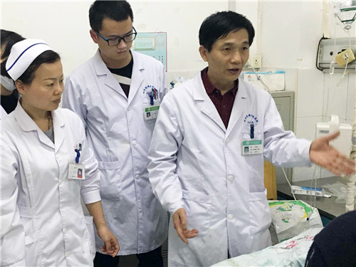 4月5日上午,院長周長江又到病房探視,關心慰問家屬,并進一步安排治療工作。