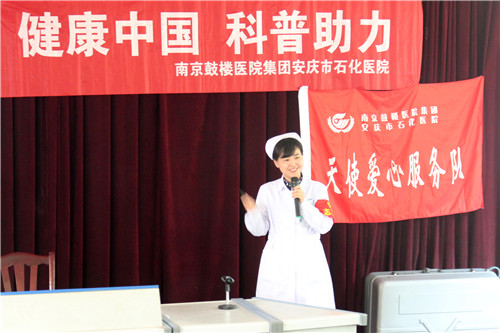 “健康中國,科普助力”,5月9日下午,我院護理部組織“天使愛心服務隊”前往老峰中學開展健康宣教活動?;ń芨痹洪L、護理部李桃云主任等參加。