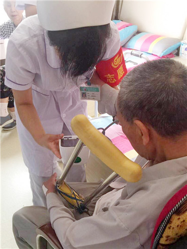 志愿者們一走進(jìn)敬老院就立即投入工作,免費(fèi)為老人們測(cè)血壓、血糖、梳頭、剪指甲,為臥床老人翻身、拍背,與老人們聊天、拉家常,耐心解答老人們的各類健康問題,現(xiàn)場(chǎng)其樂融融。