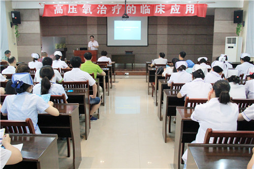 7月7日,我院神經(jīng)內(nèi)科在多功能廳舉辦高壓氧治療技術(shù)在臨床應(yīng)用新進展學(xué)術(shù)講座。花杰副院長主持并致歡迎詞,兄弟醫(yī)院及我院臨床相關(guān)科室醫(yī)護人員70余人參會。