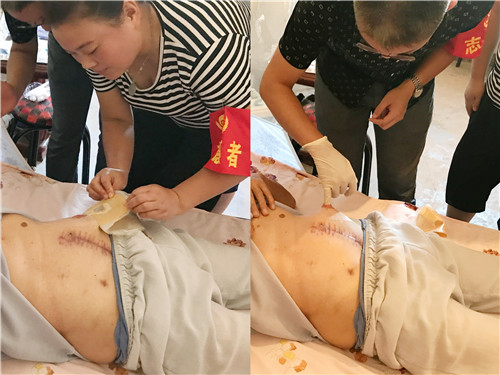 許合立老人今年5月由于腸道疾病在我院普通外科行結(jié)腸造口術(shù),于6月出院。此次,護(hù)理部李桃云主任帶領(lǐng)普通外科主治醫(yī)師孫潤(rùn)森和責(zé)任護(hù)士丁玉瑾、陳誠(chéng)來(lái)到老人家中回訪。孫潤(rùn)森醫(yī)生詳細(xì)為老人檢查了傷口,并仔細(xì)詢問(wèn)老人出院后的飲食及日?;顒?dòng)情況;護(hù)士丁玉瑾一邊為老人更換造口袋,一邊耐心教老人更換造口袋的技巧以及如何做好造口周圍皮膚的護(hù)理;護(hù)士陳誠(chéng)還就疾病的注意事項(xiàng)和預(yù)防并發(fā)癥的發(fā)生做了相關(guān)指導(dǎo),并對(duì)老人展開(kāi)針對(duì)性的心理健康宣教;李桃云主任還將帶去的愛(ài)心水果送到老人手中,老人激動(dòng)地連聲說(shuō)謝謝。