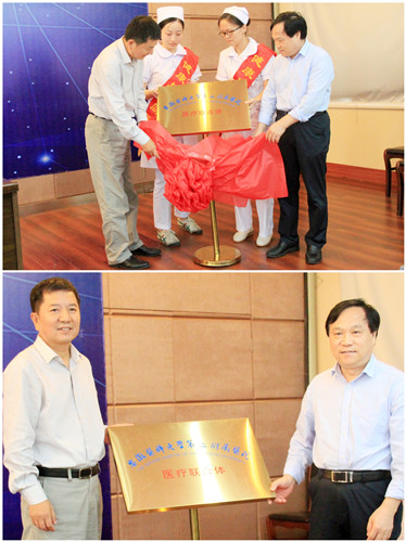 安醫(yī)二附院黨委書記都鵬飛與金陵藥業(yè)董事長李春敏親自為醫(yī)聯(lián)體揭牌,標(biāo)志著我院正式加入安醫(yī)二附院的區(qū)域性醫(yī)聯(lián)體大家庭。
