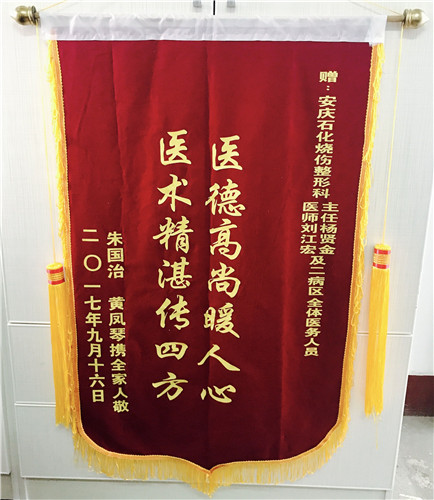患兒傷后29天痊愈出院,家人也為燒傷整形二科全體醫(yī)護送上“醫(yī)德高尚暖人心 醫(yī)術精湛傳四方”的錦旗一面。這也是近年來我院嚴重燒沖復合傷治療時間最短、臨床效果最好的病例之一。