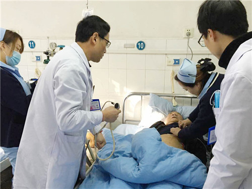 1月5日下午4點(diǎn),東至縣一名神志不清的66歲女性患者被送至我院急診科。診斷為COPD(慢阻肺)伴Ⅱ型呼衰、肺性腦病,立即給予心電監(jiān)護(hù)、簡易呼吸機(jī)等急救處理,同時(shí)與呼吸內(nèi)科、ICU聯(lián)系,但床位均滿??紤]到患者病情不穩(wěn)、不宜轉(zhuǎn)診,在急診科、醫(yī)教科和ICU 的多方努力協(xié)調(diào)下,于ICU加床收治。