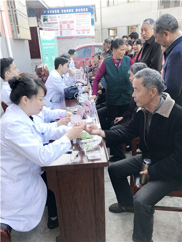 車行1個多小時(shí)到達(dá)義診現(xiàn)場,他們手腳麻利地穿上工作服迅速進(jìn)入工作狀態(tài),為早已等候多時(shí)的村民量血壓、測血糖、問診、把脈、開處方,并耐心解答村民的各種健康問題,給予科學(xué)的飲食建議,讓大家及時(shí)了解自己的身體狀況及相關(guān)疾病的預(yù)防。