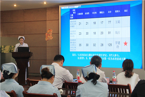 為提高護(hù)理人員運用質(zhì)量管理的科學(xué)方法持續(xù)改善臨床護(hù)理問題的能力,營造團(tuán)隊合作、互相學(xué)習(xí)和促進(jìn)的氛圍,護(hù)理部于5月8日下午在醫(yī)院多功能廳舉行第四期“護(hù)理品管圈成果匯報”競賽活動。周長江院長、花杰副院長、徐晨副院長、汪文曉副院長、醫(yī)教科吳彥農(nóng)科長、院感辦汪曉玲主任及護(hù)理部劉風(fēng)英主任擔(dān)任評委。全院各科室護(hù)士長、護(hù)理骨干及圈員共計100余人現(xiàn)場觀摩學(xué)習(xí)。