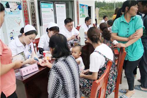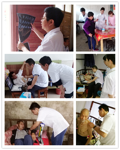 醫(yī)療隊(duì)隨即兵分兩路,一隊(duì)深入10余戶貧困戶及村民家中,進(jìn)行B超、心電圖等免費(fèi)健康體檢、調(diào)查了解社情民意;另一隊(duì)現(xiàn)場(chǎng)開(kāi)展義診,為100多位村民進(jìn)行健康咨詢,建立健康檔案,免費(fèi)測(cè)血糖、量血壓、發(fā)放健康宣教資料。