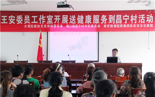 5月17日,我院內(nèi)分泌科主任、大觀區(qū)政協(xié)委員王安健康咨詢工作室組織醫(yī)院12人專家醫(yī)療隊(duì),來(lái)到??阪?zhèn)昌寧三峽移民村開(kāi)展義務(wù)健康服務(wù)活動(dòng)。
