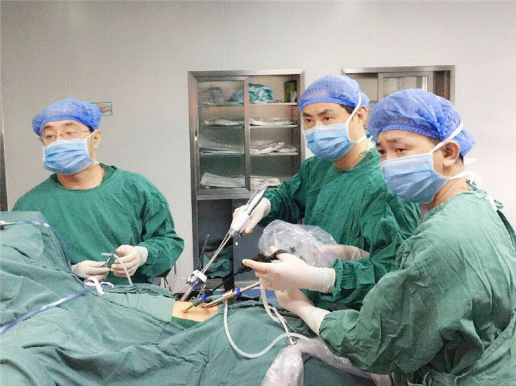 近兩周,周國保主任已成功開展了多例高難度復(fù)雜手術(shù),如外傷致腎蒂血管斷裂的成功手術(shù)搶救、大腎癌的腹腔鏡根治性手術(shù)、小腎癌的腹腔鏡腎部分切除術(shù)及功能性腎上腺腫瘤的腹腔鏡手術(shù),還有經(jīng)皮腎鏡碎石術(shù)、電子輸尿管軟鏡鈥激光碎石術(shù)等,這些手術(shù)的成功實施無不彰顯出周國保高超的微創(chuàng)泌尿外科技術(shù)。