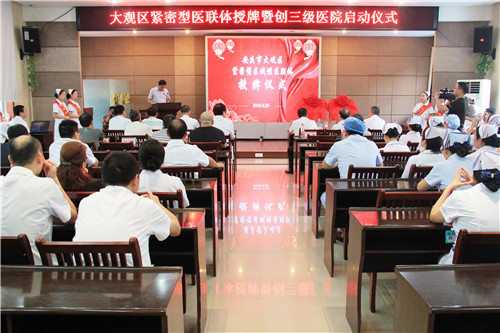 政府與國(guó)企合作共建醫(yī)聯(lián)體,在我市尚屬首次。7月31日簽約,9月20日掛牌,在不到短短的兩個(gè)月時(shí)間里,醫(yī)聯(lián)體成員單位密集磋商、建章立制,“大觀(guān)模式”跑出了“加速度”,醫(yī)聯(lián)體建設(shè)邁出了實(shí)效性步伐。