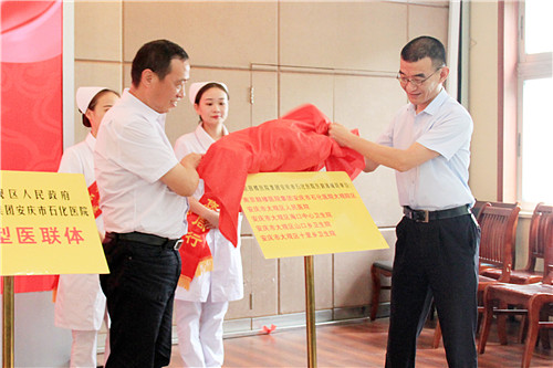 執(zhí)筆繪藍(lán)圖,落筆惠民生。9月20日,大觀(guān)區(qū)人民政府與南京鼓樓醫(yī)院集團(tuán)安慶市石化醫(yī)院有限公司“聯(lián)姻”組建的安慶市首家緊密型醫(yī)聯(lián)體醫(yī)院在安慶市第三人民醫(yī)院正式揭牌。大觀(guān)區(qū)委、區(qū)政府有關(guān)領(lǐng)導(dǎo)出席并致辭,金陵藥業(yè)公司總裁梁玉堂、紀(jì)委書(shū)記陳勝和南京鼓樓醫(yī)院集團(tuán)安慶市石化醫(yī)院院長(zhǎng)周長(zhǎng)江等管理高層出席南京鼓樓醫(yī)院集團(tuán)安慶市石化醫(yī)院大觀(guān)院區(qū)(安慶市第三人民醫(yī)院)揭牌儀式,大觀(guān)轄區(qū)各醫(yī)療機(jī)構(gòu)負(fù)責(zé)人等參加了揭牌儀式。同日,安慶市石化醫(yī)院吹響創(chuàng)建三級(jí)醫(yī)院“集結(jié)號(hào)”。