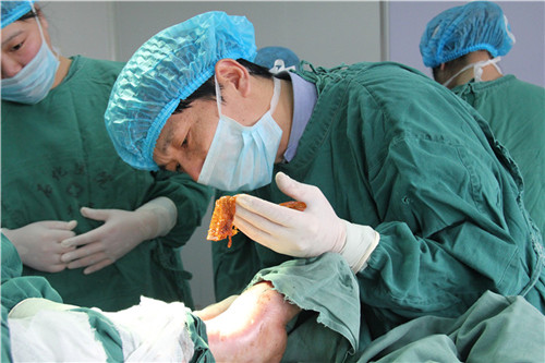 54歲的楊賢金目光如炬,醫(yī)技嫻熟,老金的每次植皮手術(shù)都是他親自操刀,“姜還是老的辣,真的特別佩服楊主任?!笨剖依锬贻p醫(yī)生們每每觀摩楊賢金在手術(shù)臺上的表現(xiàn),無不為他點(diǎn)贊。楊賢金用精湛的技術(shù)一點(diǎn)一點(diǎn)修復(fù)著老金受損的皮膚,半年多全身心的救治終于讓老金的臉上漸漸有了笑容。