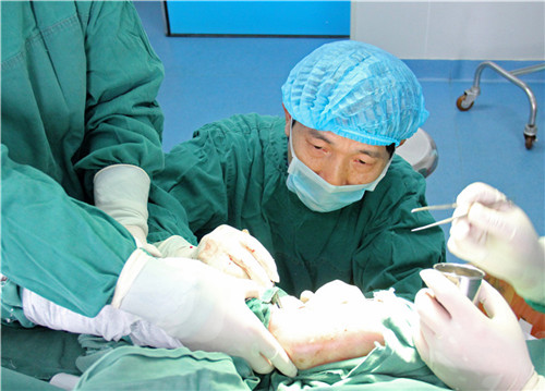 老金的整個救治過程,總共做了8次植皮手術(shù)。由于燒傷病人的皮膚移植只能用自身的皮膚組織,而老金卻僅存5%的完好皮膚,根本不夠植皮的用量?!澳窃趺崔k?”老金遇到楊賢金是幸運(yùn)的,安慶市石化醫(yī)院的燒傷科久負(fù)盛名,楊賢金更是業(yè)內(nèi)響當(dāng)當(dāng)?shù)臒齻啤吧袷置t(yī)”。
