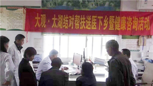 為貫徹落實(shí)《大觀區(qū)關(guān)于結(jié)對(duì)幫扶太湖縣推進(jìn)脫貧攻堅(jiān)的實(shí)施方案》精神,推動(dòng)健康扶貧工作,11月5日,我院本部、大觀院區(qū)、醫(yī)聯(lián)體成員單位??谥行男l(wèi)生院6位醫(yī)療專(zhuān)家在大觀區(qū)衛(wèi)計(jì)委副主任尹敏同志帶領(lǐng)下,赴太湖縣小池鎮(zhèn)開(kāi)展送醫(yī)送藥送健康下鄉(xiāng)健康咨詢(xún)活動(dòng)。