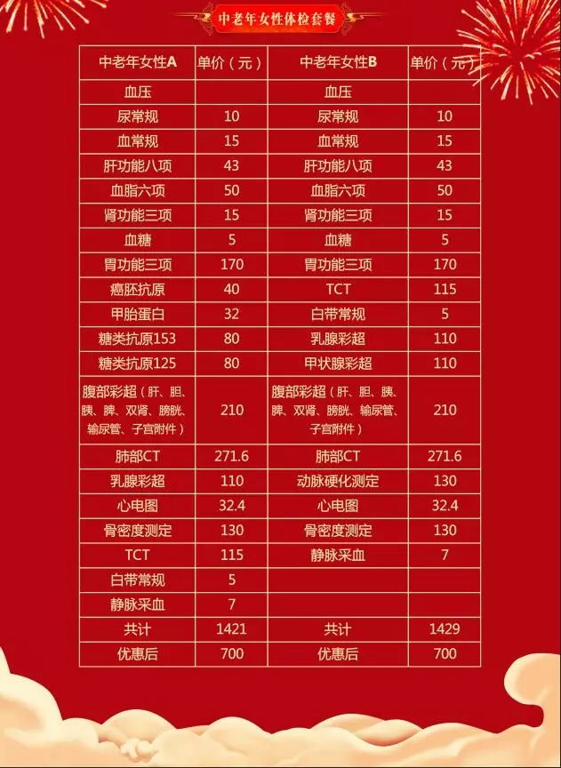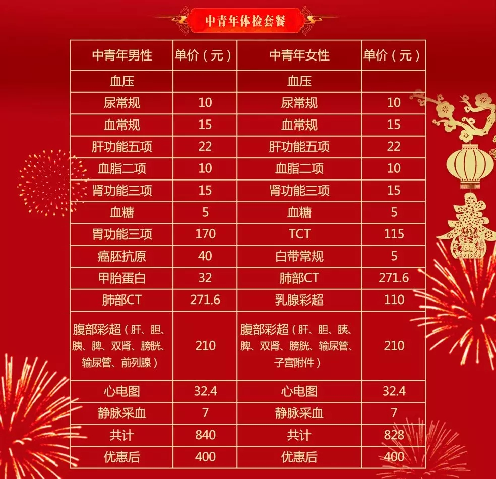 活動針對中青年和中老年兩類人群,套餐設計全面,基本滿足大家體檢所需。本次年終活動5折優(yōu)惠,可以預約體檢。