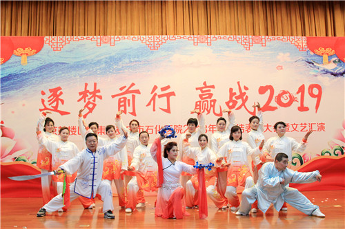 豪情歡歌辭舊歲,喜氣開篇迎新年,一曲《相親相愛》拉開文藝匯演序幕。《中國味道》、《白衣風(fēng)采》、《愛我石醫(yī)》三大篇章19個(gè)節(jié)目輪番登場,昂揚(yáng)的歌聲,唱出了石醫(yī)人的斗志豪情;逗趣的小品,演出了醫(yī)護(hù)的酸甜苦辣;曼妙的舞姿,舞出了白衣天使的活潑靈動(dòng);鏗鏘的朗誦,誦出了醫(yī)者的仁心仁術(shù)。醫(yī)聯(lián)體“新成員”大觀院區(qū)帶來養(yǎng)身氣功《八段錦》,真功夫表演贏得現(xiàn)場掌聲不斷?!笆t(yī)院不一般,南聯(lián)北移擴(kuò)市場。三級醫(yī)院齊心創(chuàng),保障健康民稱贊?!逼呦膳褶D(zhuǎn)悠揚(yáng)的黃梅調(diào)《黃梅新頌》,贊遍了醫(yī)院改制來的每一次巨變,見證了每一個(gè)榮耀的里程碑時(shí)刻,為迎春文藝匯演畫下圓滿的句點(diǎn)。相聚的美好時(shí)光總是短暫的,一家人相約來年再見,讓我們期待2019醫(yī)院更美好。