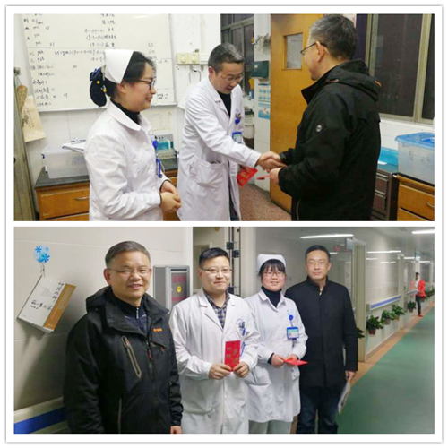 大年三十,院領(lǐng)導(dǎo)來(lái)到病房,慰問(wèn)除夕夜依然堅(jiān)守在崗位上的他們。