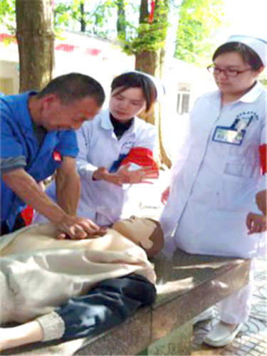 志愿者們一走進養(yǎng)老院就立即投入工作,量血壓、測血糖,陪老人們聊天、耐心解答他們的各類健康問題。志愿者們還對養(yǎng)老院的護理員們進行了心肺復蘇和誤吸的急救處理技能培訓以及老年護理健康宣教,護理員們認真學習并積極參與模型練習,現(xiàn)場氣氛活躍。