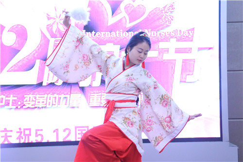 年輕護士長們深情朗誦原創(chuàng)作品《堅守——與愛同行》,同時放映來自我院50對雙職工的院內外照片集錦,還有記錄雙職工工作、生活點滴的微視頻,真情演繹了雙職工夫妻檔攜手共進、相濡以沫的故事。雙主體教改班的同學們伴隨著《最終舞蹈》的音樂,用青春洋溢的舞姿展現(xiàn)了護理人員充滿活力的新風貌、新精神、新形象。來自大觀院區(qū)寧夢然的舞蹈《無歸》美輪美奐、韻味十足,讓大家感受到了古典的魅力。“我有一個夢像雨后彩虹,用我們笑容來溫暖病人被疾病折磨的心靈”,一曲《最美的期待》將大會氣氛推向高潮。