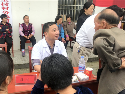 5月16日上午,黨委副書記汪文曉帶領普通外科吳爾水主任、功能檢查科汪奠亞主任、骨科嚴結兵主任、心血管內(nèi)科汪念東主任、耳鼻喉科馮艷華醫(yī)生、神經(jīng)內(nèi)科方小龍醫(yī)生、心血管內(nèi)科彭鳳艷護士長、內(nèi)分泌科童玲護士長等一行10人的專家隊伍來到三里村。很多村民早已在村部門口翹首以待,專家們將各類檢查儀器搬挪到位,就投入到了緊張的工作中。他們仔細地為前來看診的村民做檢查,讓百姓切身感受到我院專家團隊的精湛醫(yī)技?;顒蝇F(xiàn)場有許多上了年紀的村民,聽力不好、也不認字,專家們便不厭其煩提高音量耐心詢問病史,開具診療方案的同時留下自己的聯(lián)系方式,方便村民們隨時聯(lián)系咨詢。