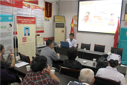 大觀區(qū)政協(xié)委員、我院內(nèi)分泌科主任王安從不同的角度、用淺顯易懂的話語為廣大患者講解糖尿病的早期診斷、篩查與防治。他從如何預(yù)防和如何控制兩個方面進(jìn)行展開,希望糖尿病患者多注重平時生活,平穩(wěn)控制血糖。作為“王安委員健康咨詢工作室”領(lǐng)銜人,王安主任清楚肩上的重?fù)?dān)和責(zé)任,他堅(jiān)信糖尿病是可防可治的,糖尿病患者也可以和正常人一樣健康生活。糖尿病的治療是一個長期的過程,他呼吁患者和家屬都積極參與進(jìn)來,為自己和家人的健康共同努力。