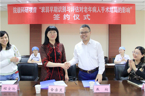 隨后,燕院長與金主任就院級項(xiàng)目“衰弱早期識別與評估對老年病人手術(shù)結(jié)局的影響”進(jìn)行了現(xiàn)場簽約。