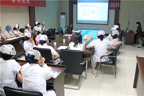 燕翔副院長作指導(dǎo)講話,他提到,醫(yī)院今年上報(bào)科研項(xiàng)目,其中,護(hù)理也有申報(bào),這是一個(gè)良好的開端??蒲泄ぷ魇侵匾纳a(chǎn)力,護(hù)理科研一定要來源于實(shí)踐,服務(wù)于臨床,希望大家借此機(jī)會好好學(xué)習(xí)。