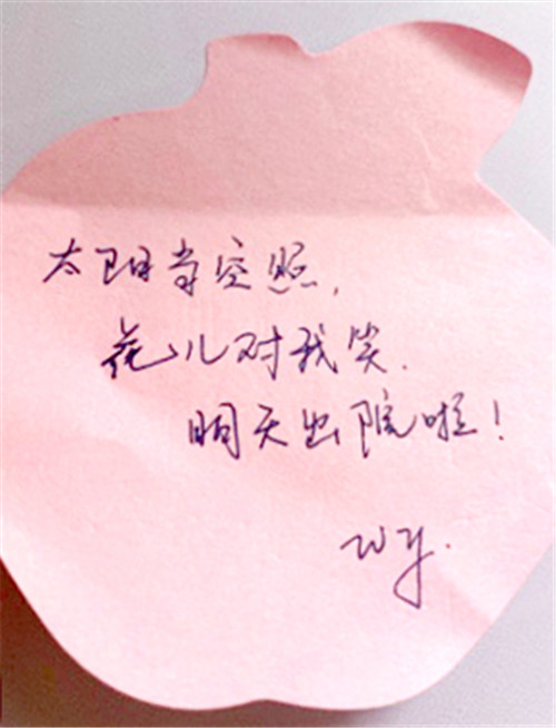 心愿欄傳遞著正能量,承載著希望和夢想,散播著溫暖。一張張心愿卡讓心與心溝通,讓愛與愛碰撞。這面心愿墻就像一針強心劑,每當我們累的時候,抬頭看到這面墻,看到滿墻患者的感謝和安慰,哪怕只是匆匆一瞥,心理上也能得到莫大的滿足,那是對我們付出的肯定,更是激勵我們奮斗的動力。